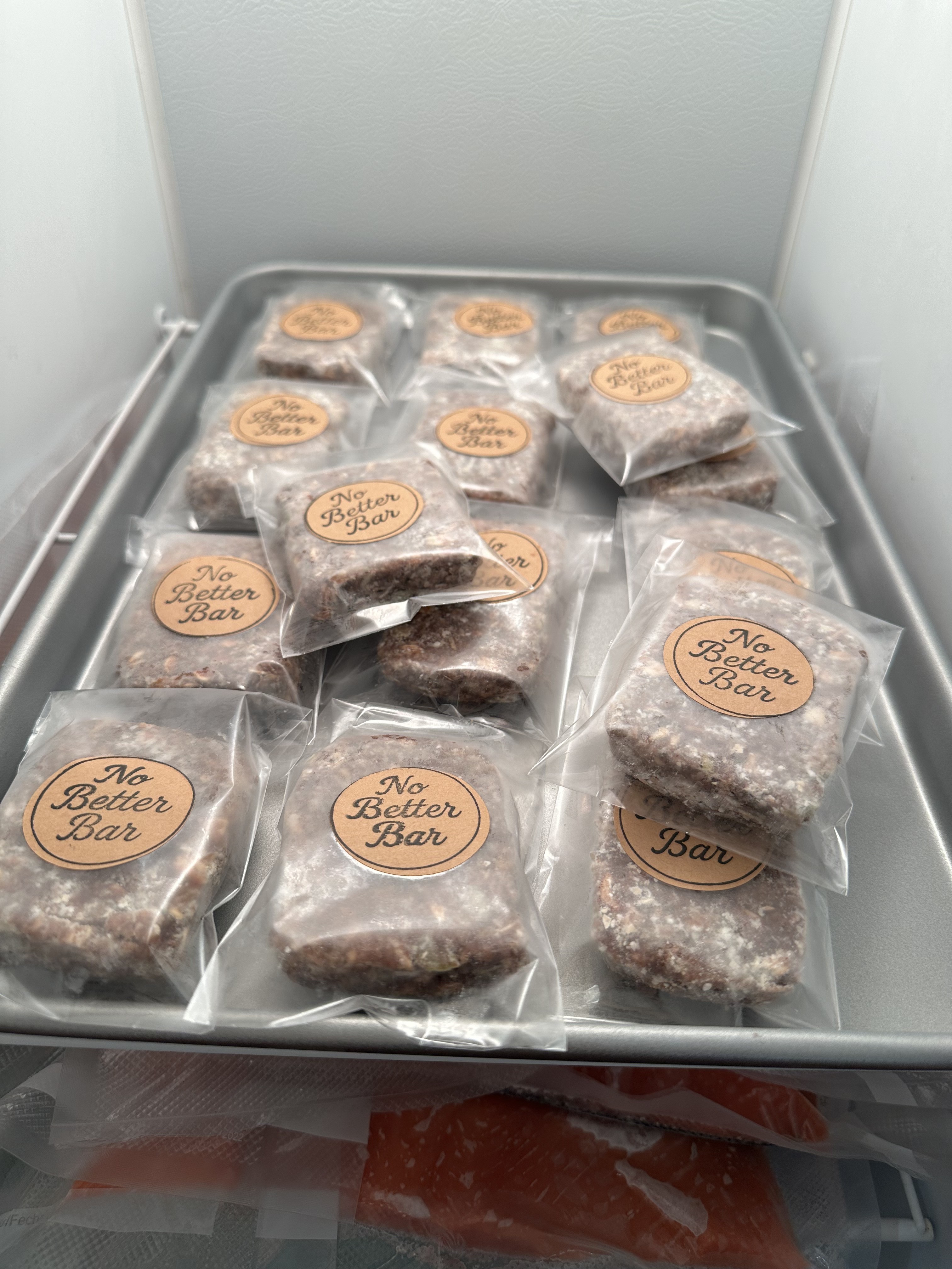 Out of that frustration (and a little kitchen magic) came No Better Bar — a handcrafted blend of honest ingredients designed to nourish, sustain, and actually taste good. Each bar is made the way food should be: with purpose, purity, and a whole lot of heart.